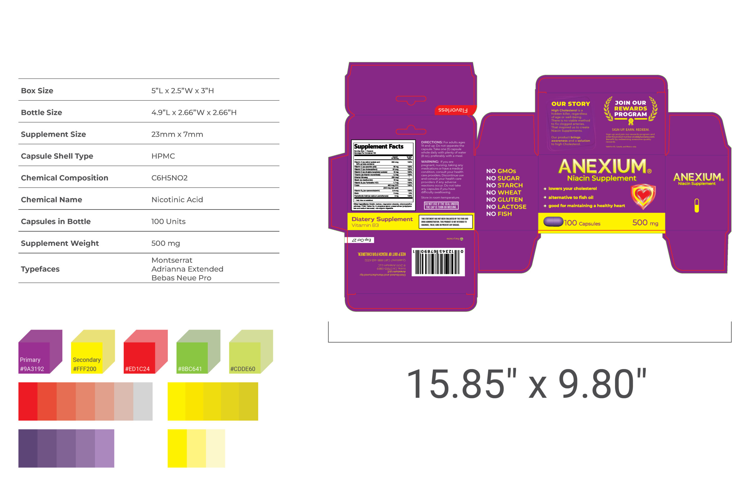 I chose a purple and yellow color scheme to create strong visual contrast and distinguish the product from other niacin supplements on store shelves. A hanger was incorporated into the packaging to allow for flexibility in retail environments. Vitamin supplements are typically sold in standalone bottles. So to enhance shelf appeal and capture consumer attention, I introduced an outer box around the bottle as part of the packaging.